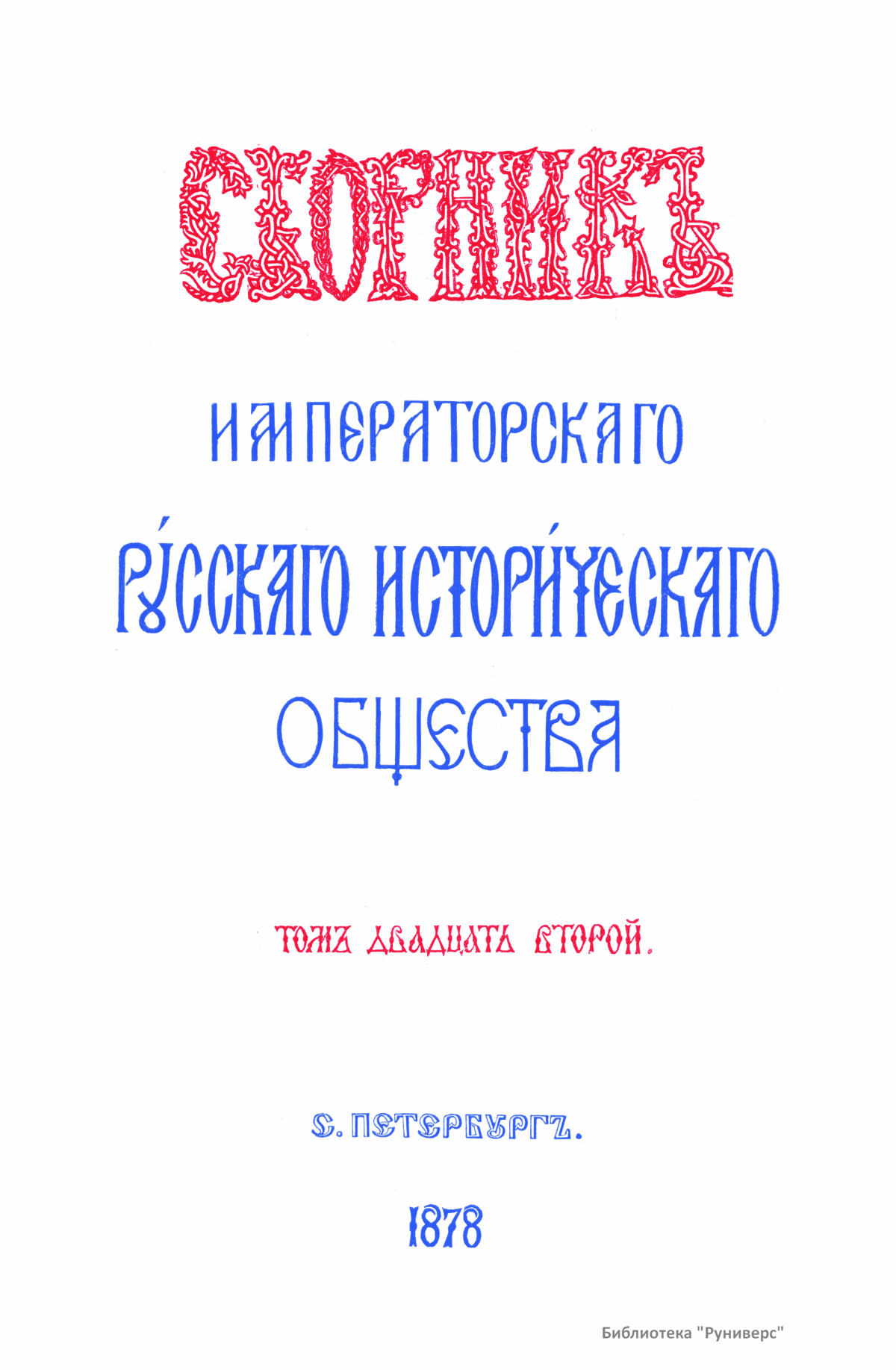Сборникъ Русскаго историческаго общества. Томъ двадцать второй