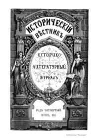 «Исторический вестник» - русский ежемесячный историко-литературный журнал. Издавался в Санкт-Петербурге с 1880-го по 1917 г. Журнал был основан А.С. Сувориным и С.Н. Шубинским с целью «знакомить читателей в живой, общедоступной форме с современным состоянием исторической науки и литературы в России и Европе». Вышло 150 тт. Каждый том состоял из трёх ежемесячных выпусков, имел свою нумерацию страниц, оглавление, список иллюстраций. Журнал приобрёл устойчивую популярность среди читателей, заняв прочное место в «триумвирате» русских исторических журналов наряду с «Русским архивом» и «Русской стариной». опережая их по количеству подписчиков. Отличием «Исторического вестника» было то, что он не помещал на своих страницах необработанных, сырых материалов. С другой стороны, журнал приближался по своему типу к журналам общелитературного образца, сочетая в себе коммерческий успех и доступное изложение материала.