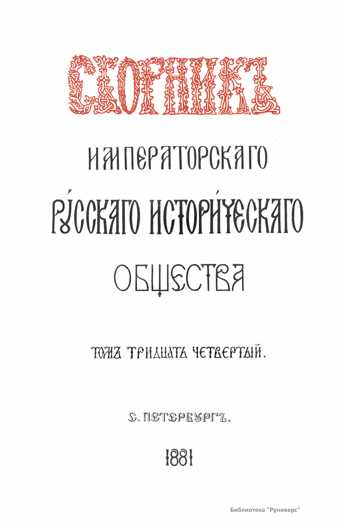 Сборникъ Русскаго историческаго общества. Томъ тридцать четвертый