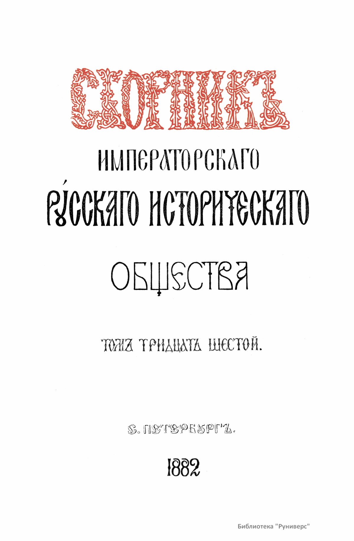 Сборникъ Русскаго историческаго общества. Томъ тридцать шестой