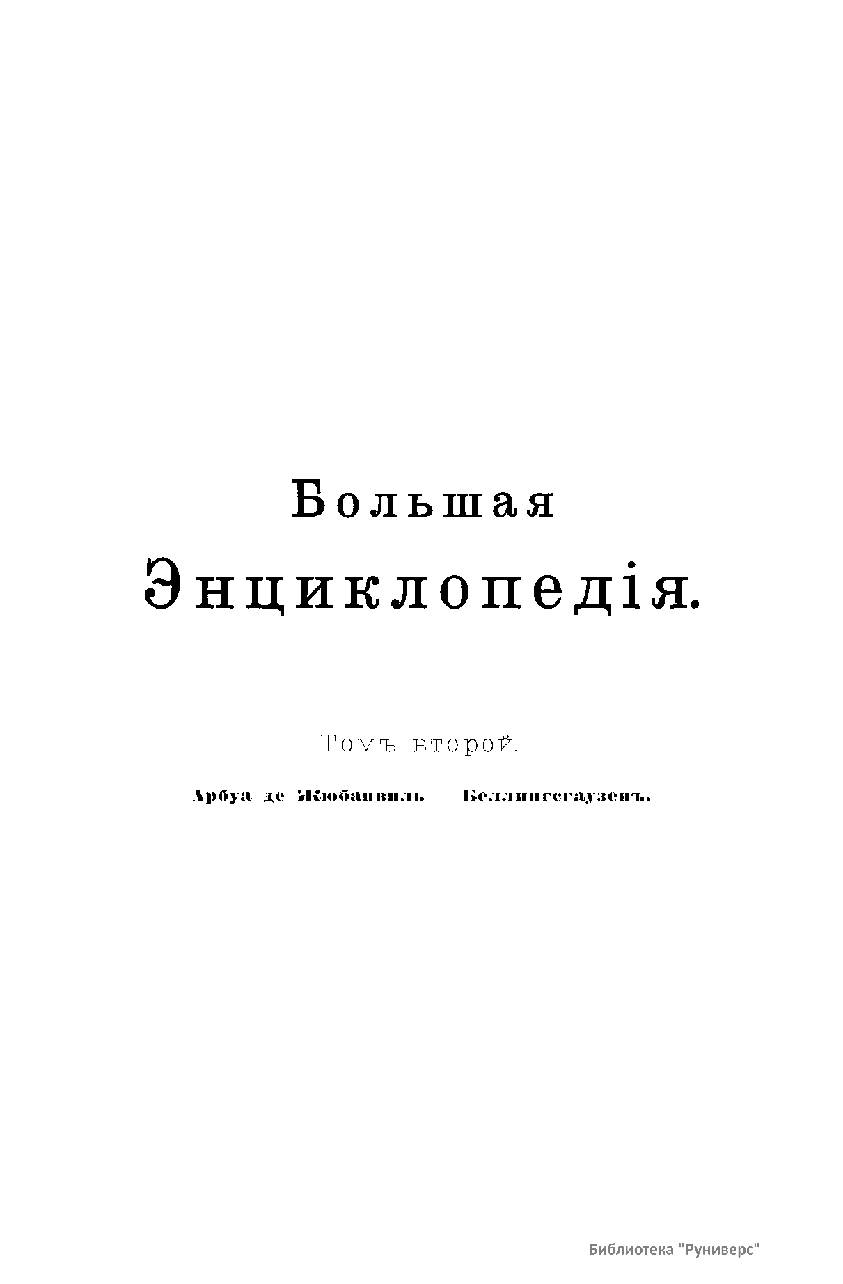 Большая Энциклопедiя. Второй томъ. Арбуа де Жюбанвиль - Беллингсгаузенъ