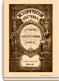 «Исторический вестник» - русский ежемесячный историко-литературный журнал. Издавался в Санкт-Петербурге с 1880-го по 1917 г. Журнал был основан А.С. Сувориным и С.Н. Шубинским с целью «знакомить читателей в живой, общедоступной форме с современным состоянием исторической науки и литературы в России и Европе». Вышло 150 тт. Каждый том состоял из трёх ежемесячных выпусков, имел свою нумерацию страниц, оглавление, список иллюстраций. Журнал приобрёл устойчивую популярность среди читателей, заняв прочное место в «триумвирате» русских исторических журналов наряду с «Русским архивом» и «Русской стариной». опережая их по количеству подписчиков. Отличием «Исторического вестника» было то, что он не помещал на своих страницах необработанных, сырых материалов. С другой стороны, журнал приближался по своему типу к журналам общелитературного образца, сочетая в себе коммерческий успех и доступное изложение материала.