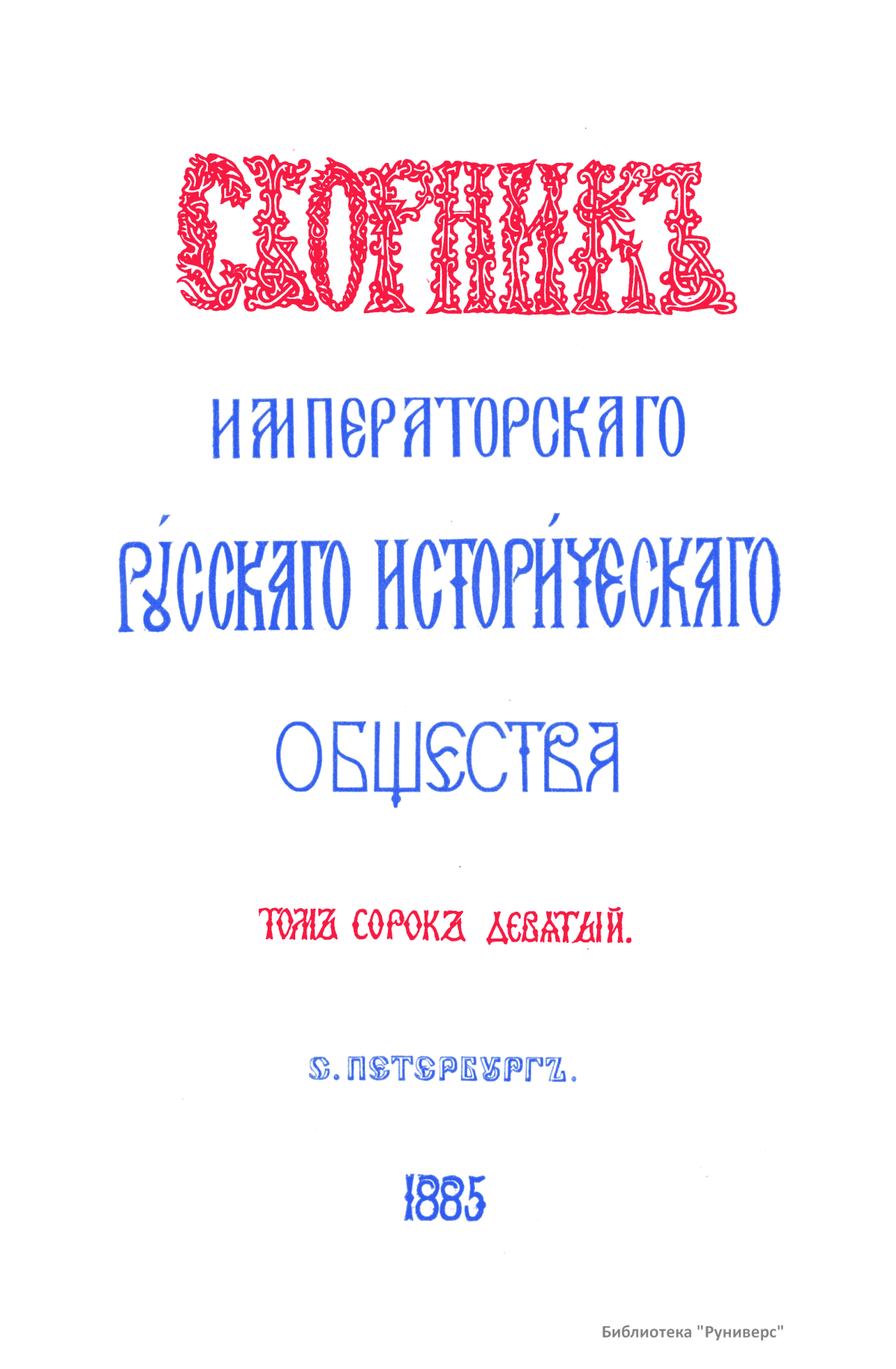 Сборникъ Русскаго историческаго общества. Томъ сорокъ девятый