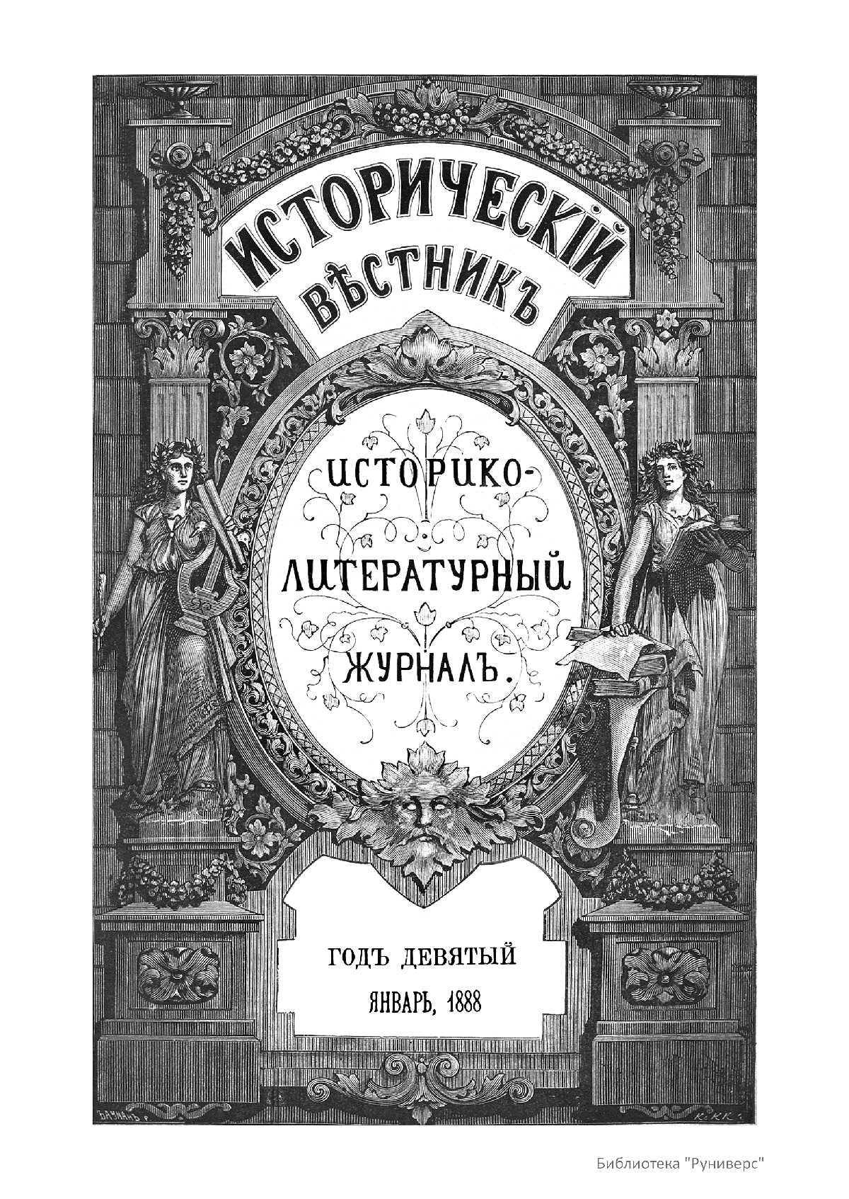 «Исторический вестник» - русский ежемесячный историко-литературный журнал. Издавался в Санкт-Петербурге с 1880-го по 1917 г. Журнал был основан А.С. Сувориным и С.Н. Шубинским с целью «знакомить читателей в живой, общедоступной форме с современным состоянием исторической науки и литературы в России и Европе». Вышло 150 тт. Каждый том состоял из трёх ежемесячных выпусков, имел свою нумерацию страниц, оглавление, список иллюстраций. Журнал приобрёл устойчивую популярность среди читателей, заняв прочное место в «триумвирате» русских исторических журналов наряду с «Русским архивом» и «Русской стариной». опережая их по количеству подписчиков. Отличием «Исторического вестника» было то, что он не помещал на своих страницах необработанных, сырых материалов. С другой стороны, журнал приближался по своему типу к журналам общелитературного образца, сочетая в себе коммерческий успех и доступное изложение материала.
