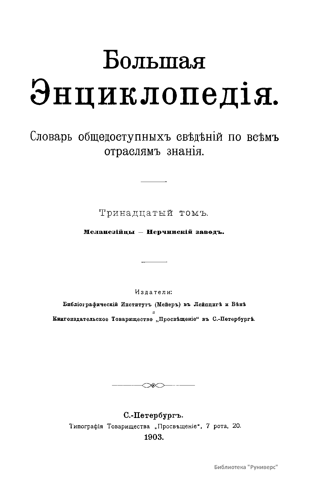 Большая Энциклопедiя. Тринадцатый том. Меланезiйцы - Нерчинскiй заводъ