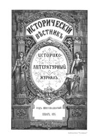 «Исторический вестник» - русский ежемесячный историко-литературный журнал. Издавался в Санкт-Петербурге с 1880-го по 1917 г. Журнал был основан А.С. Сувориным и С.Н. Шубинским с целью «знакомить читателей в живой, общедоступной форме с современным состоянием исторической науки и литературы в России и Европе». Вышло 150 тт. Каждый том состоял из трёх ежемесячных выпусков, имел свою нумерацию страниц, оглавление, список иллюстраций. Журнал приобрёл устойчивую популярность среди читателей, заняв прочное место в «триумвирате» русских исторических журналов наряду с «Русским архивом» и «Русской стариной». опережая их по количеству подписчиков. Отличием «Исторического вестника» было то, что он не помещал на своих страницах необработанных, сырых материалов. С другой стороны, журнал приближался по своему типу к журналам общелитературного образца, сочетая в себе коммерческий успех и доступное изложение материала.