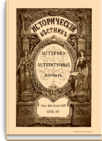 «Исторический вестник» - русский ежемесячный историко-литературный журнал. Издавался в Санкт-Петербурге с 1880-го по 1917 г. Журнал был основан А.С. Сувориным и С.Н. Шубинским с целью «знакомить читателей в живой, общедоступной форме с современным состоянием исторической науки и литературы в России и Европе». Вышло 150 тт. Каждый том состоял из трёх ежемесячных выпусков, имел свою нумерацию страниц, оглавление, список иллюстраций. Журнал приобрёл устойчивую популярность среди читателей, заняв прочное место в «триумвирате» русских исторических журналов наряду с «Русским архивом» и «Русской стариной». опережая их по количеству подписчиков. Отличием «Исторического вестника» было то, что он не помещал на своих страницах необработанных, сырых материалов. С другой стороны, журнал приближался по своему типу к журналам общелитературного образца, сочетая в себе коммерческий успех и доступное изложение материала.