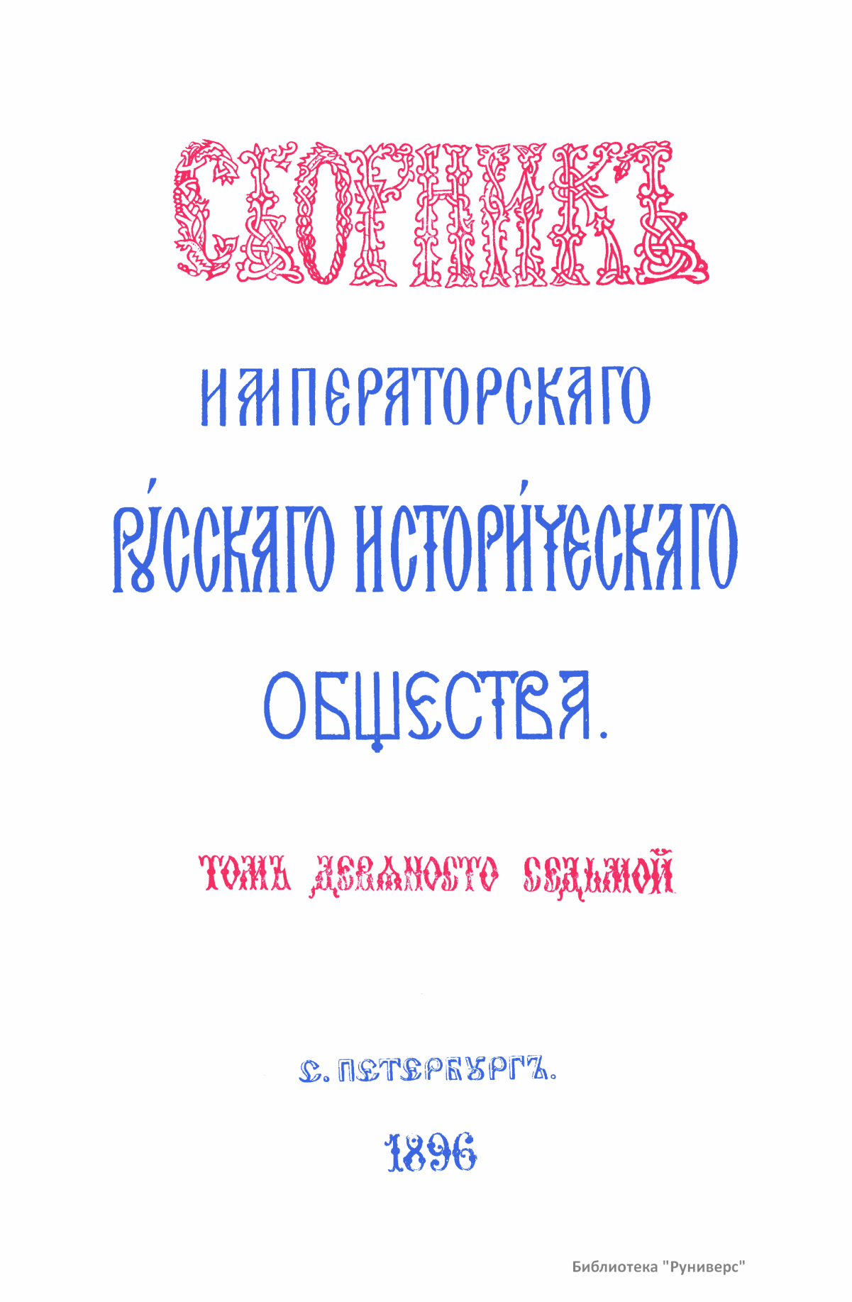 Сборникъ Русскаго историческаго общества. Томъ девяносто седьмой