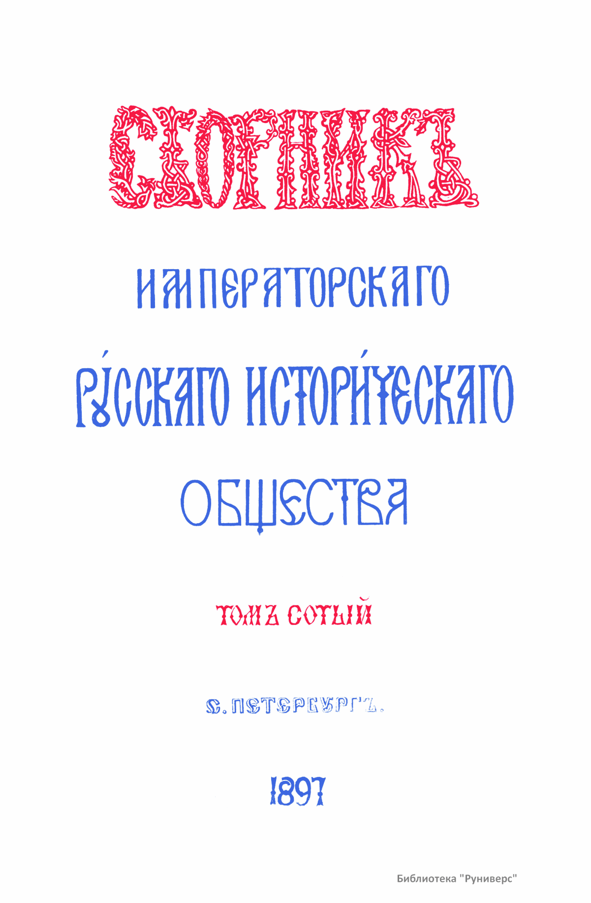 Сборникъ Русскаго историческаго общества. Томъ сотый