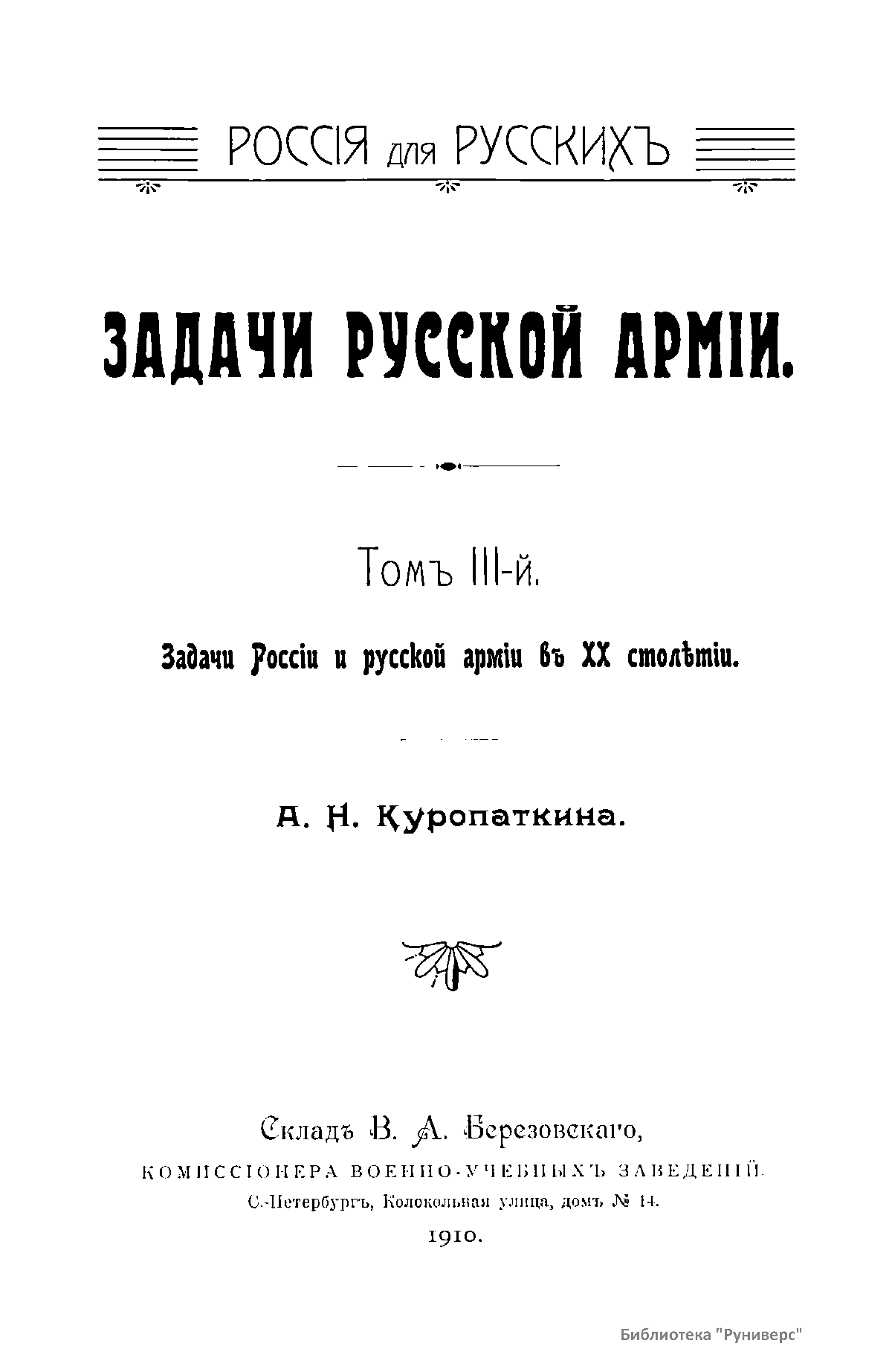 Том III-й. Задачи России и русской армии в XX столетии