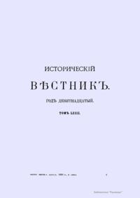 «Исторический вестник» - русский ежемесячный историко-литературный журнал. Издавался в Санкт-Петербурге с 1880-го по 1917 г. Журнал был основан А.С. Сувориным и С.Н. Шубинским с целью «знакомить читателей в живой, общедоступной форме с современным состоянием исторической науки и литературы в России и Европе». Вышло 150 тт. Каждый том состоял из трёх ежемесячных выпусков, имел свою нумерацию страниц, оглавление, список иллюстраций. Журнал приобрёл устойчивую популярность среди читателей, заняв прочное место в «триумвирате» русских исторических журналов наряду с «Русским архивом» и «Русской стариной». опережая их по количеству подписчиков. Отличием «Исторического вестника» было то, что он не помещал на своих страницах необработанных, сырых материалов. С другой стороны, журнал приближался по своему типу к журналам общелитературного образца, сочетая в себе коммерческий успех и доступное изложение материала.