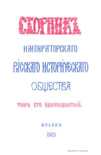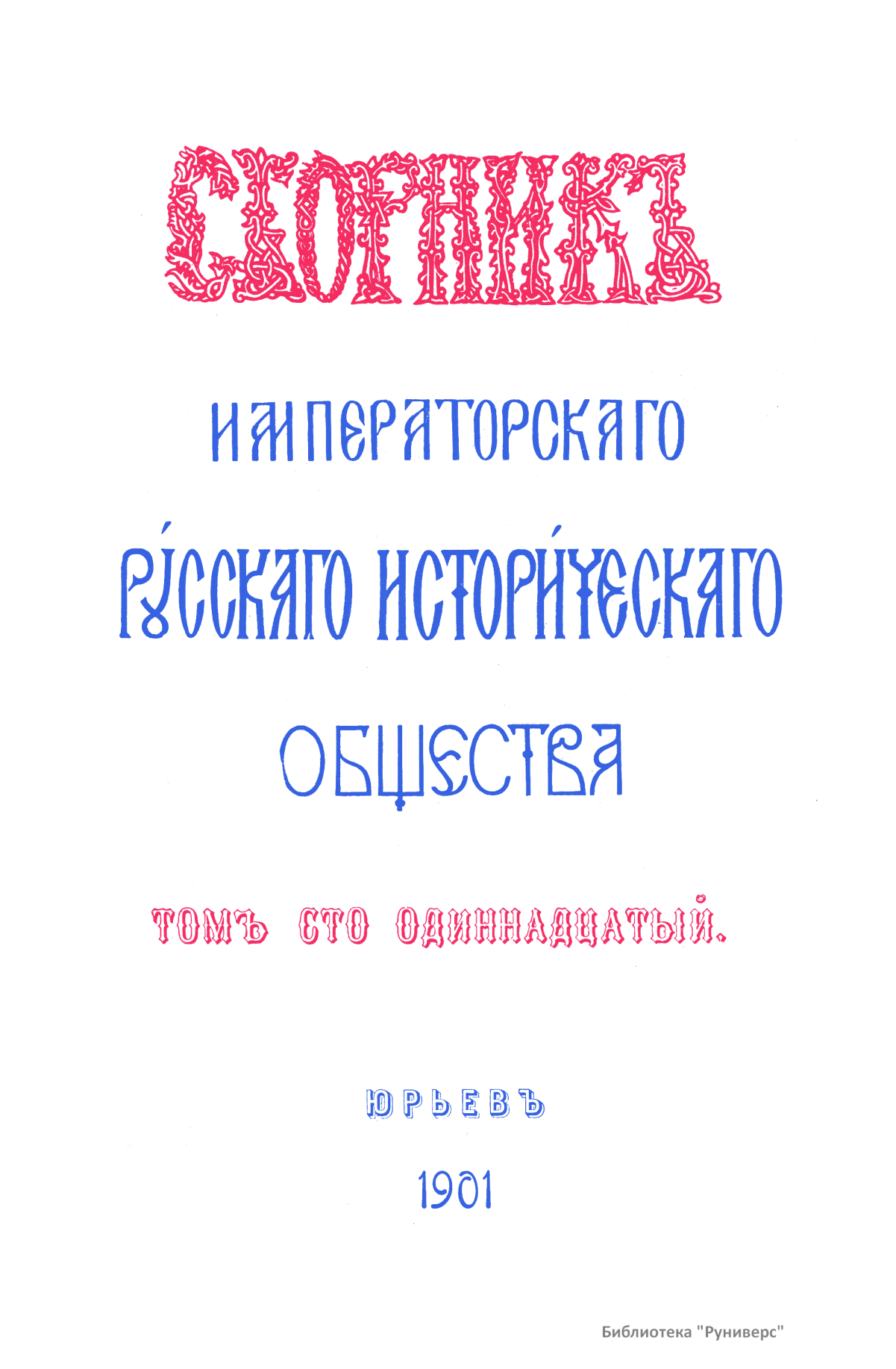 Сборникъ Русскаго историческаго общества. Томъ сто одиннадцатый