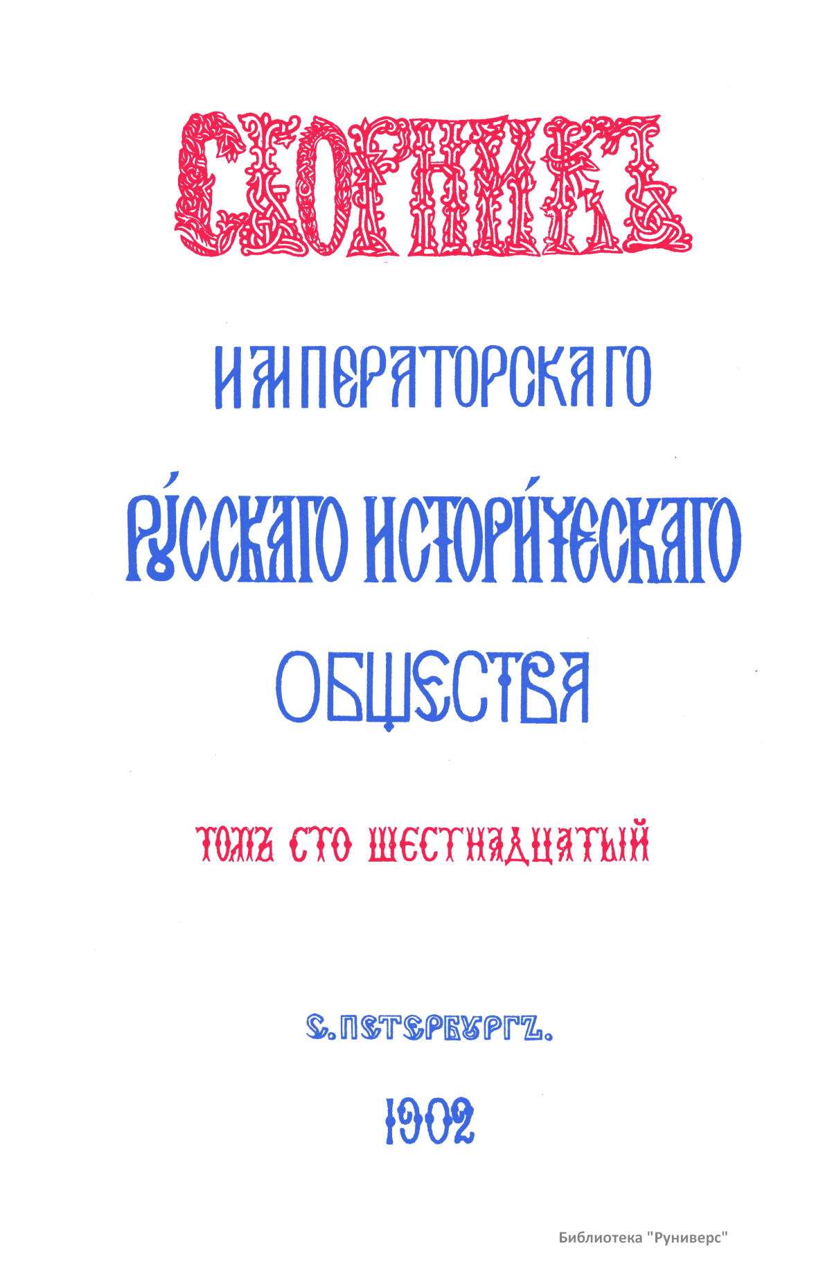 Сборникъ Русскаго историческаго общества. Томъ сто шестнадцатый