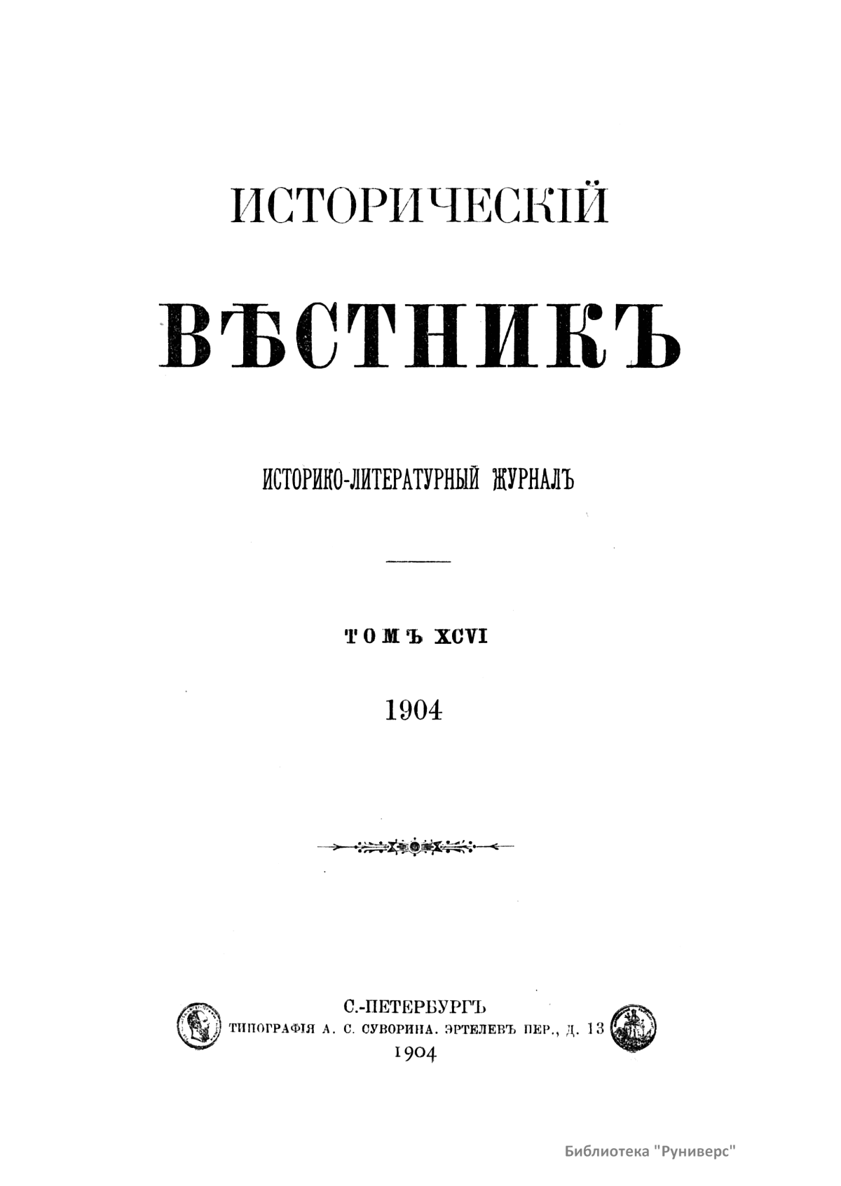 Исторический вестник. Историко-литературный журнал. Том XCVI