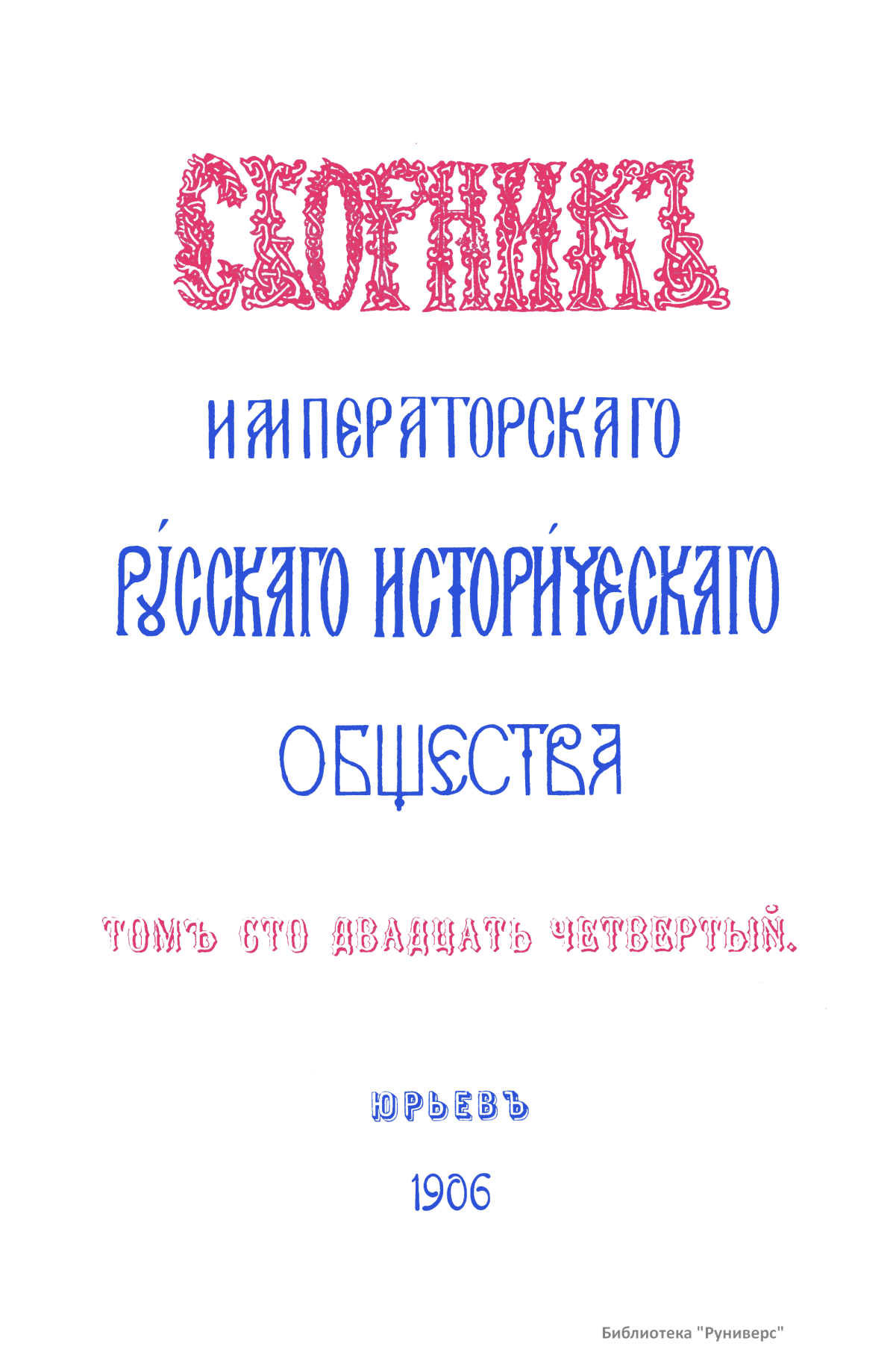 Сборникъ Русскаго историческаго общества. Томъ сто двадцать четвертый