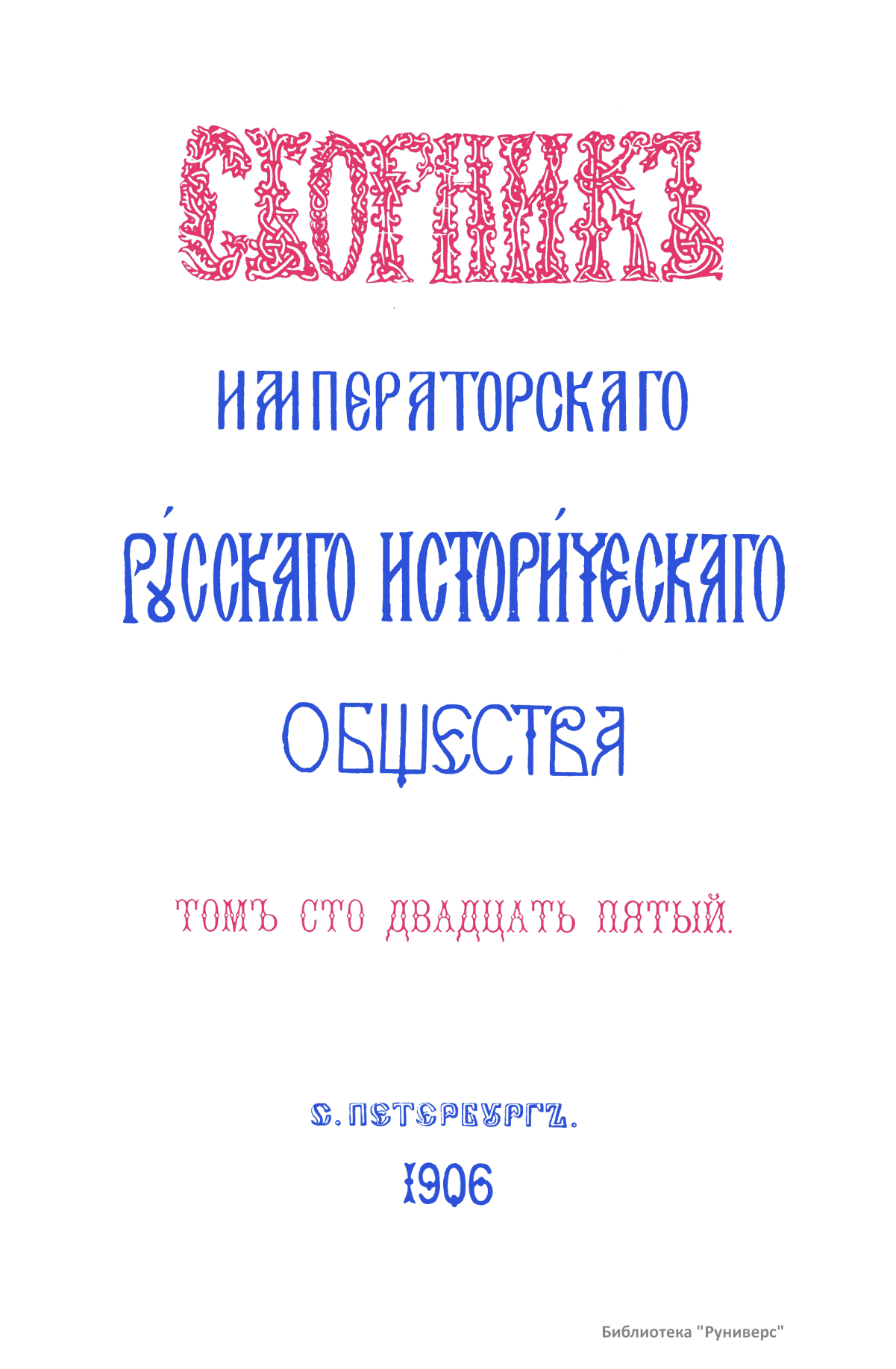 Сборникъ Русскаго историческаго общества. Томъ сто двадцать пятый