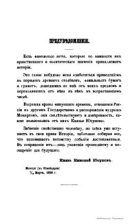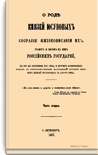 О роде князей Юсуповых, собрание жизнеописаний их, грамот и писем к ним российских государей, с XVI до половины XIX века и других фамильных бумаг, с присовокуплением поколенной росписи предков князей Юсуповых с XIV-го века. Часть вторая