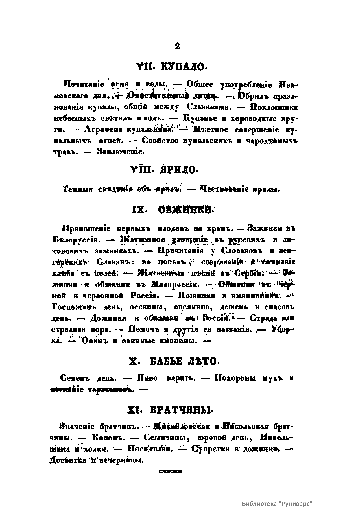 В издании в историческом аспекте автор рассматривает следующие вопросы: свойства и характер русских славян; жилища; домоводство; одежда; образ жизни; музыка.