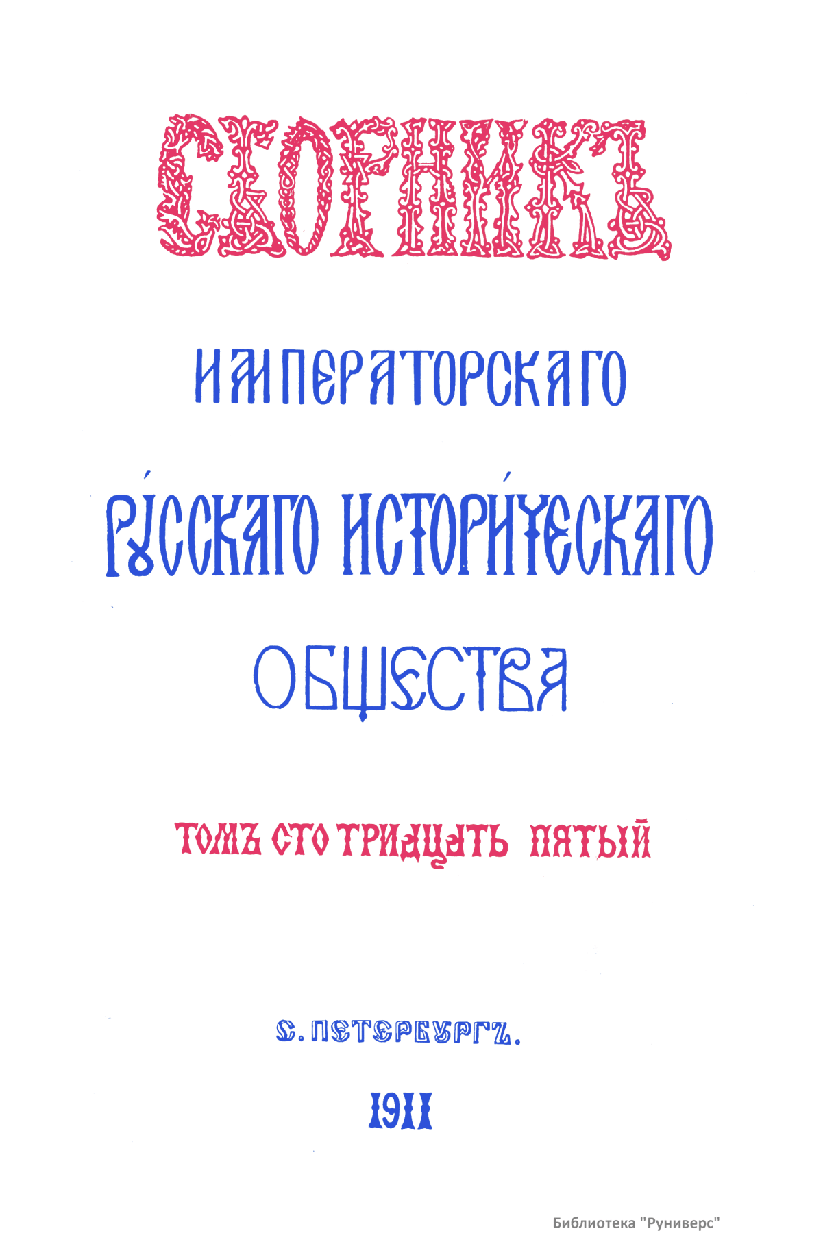 Сборникъ Русскаго историческаго общества. Томъ тридцать пятый