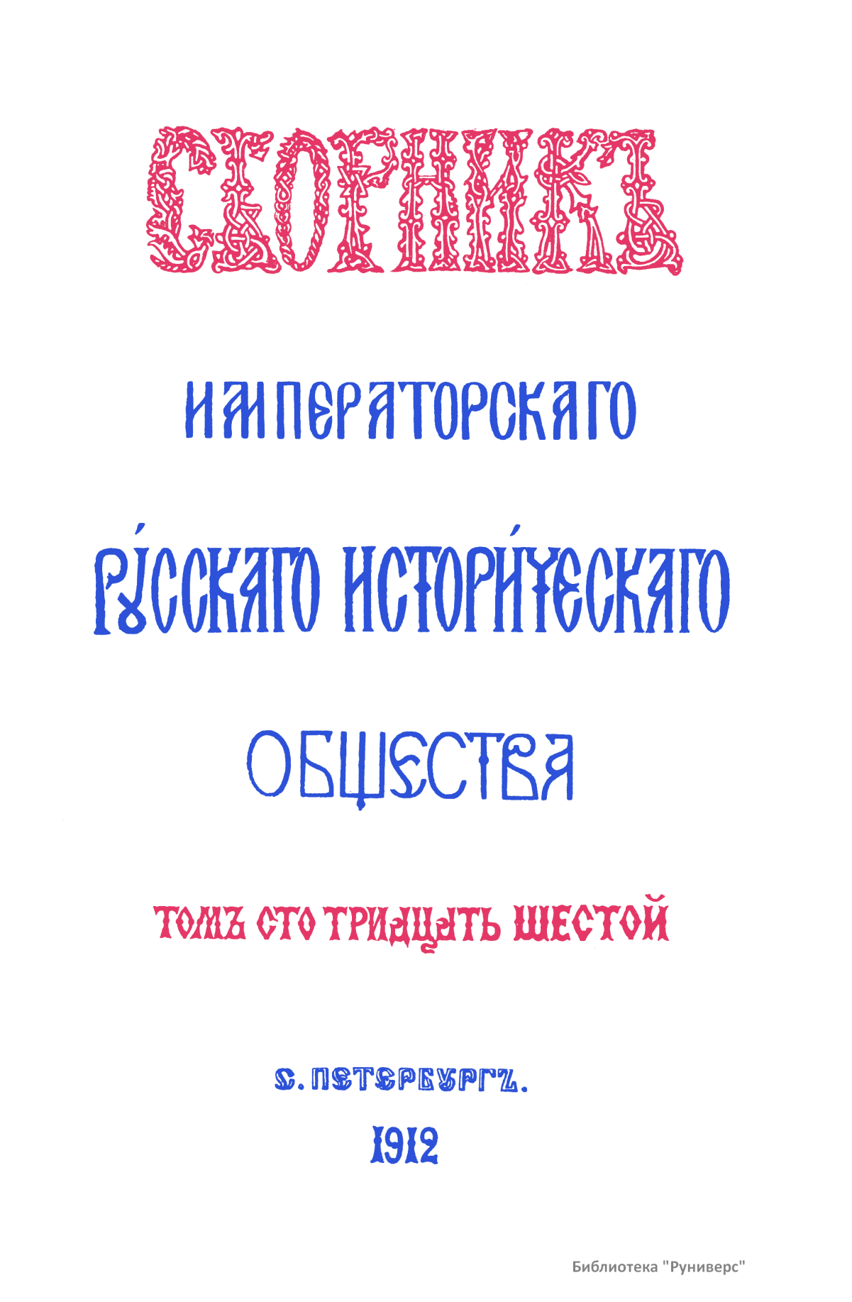Сборникъ Русскаго историческаго общества. Томъ сто тридцать шестой