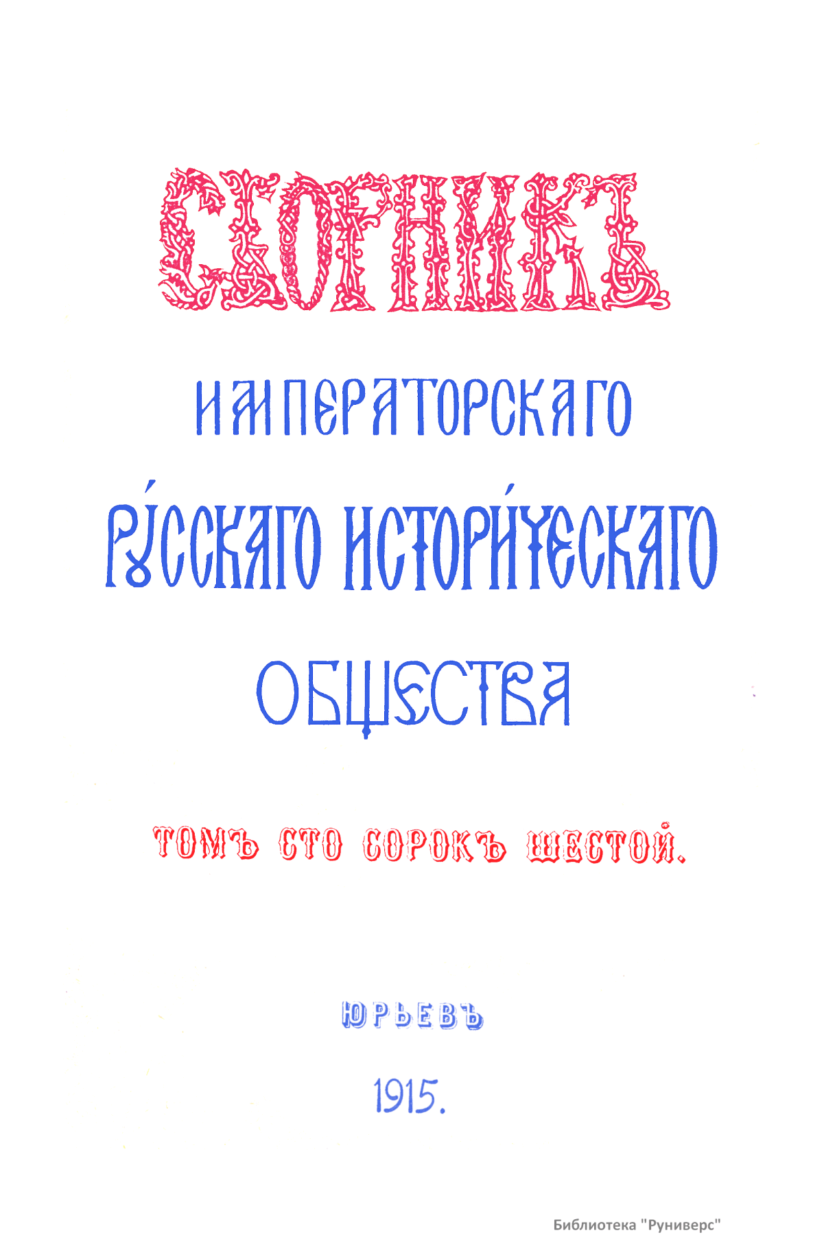 Сборникъ Русскаго историческаго общества. Томъ сто сорокъ шестой