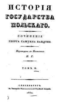 Принимая во внимание, что переводчик к моменту подготовки издания к печати служил старшим цензором С.-Петербургского цензурного комитета, разумно предположить, что это издание увидело свет именно благодаря выбранному Бандтке нейтральному, объективистскому стилю изложения польской истории, свободному от эмоций и политизированных оценок, обычно свойственных польской историографии того времени.