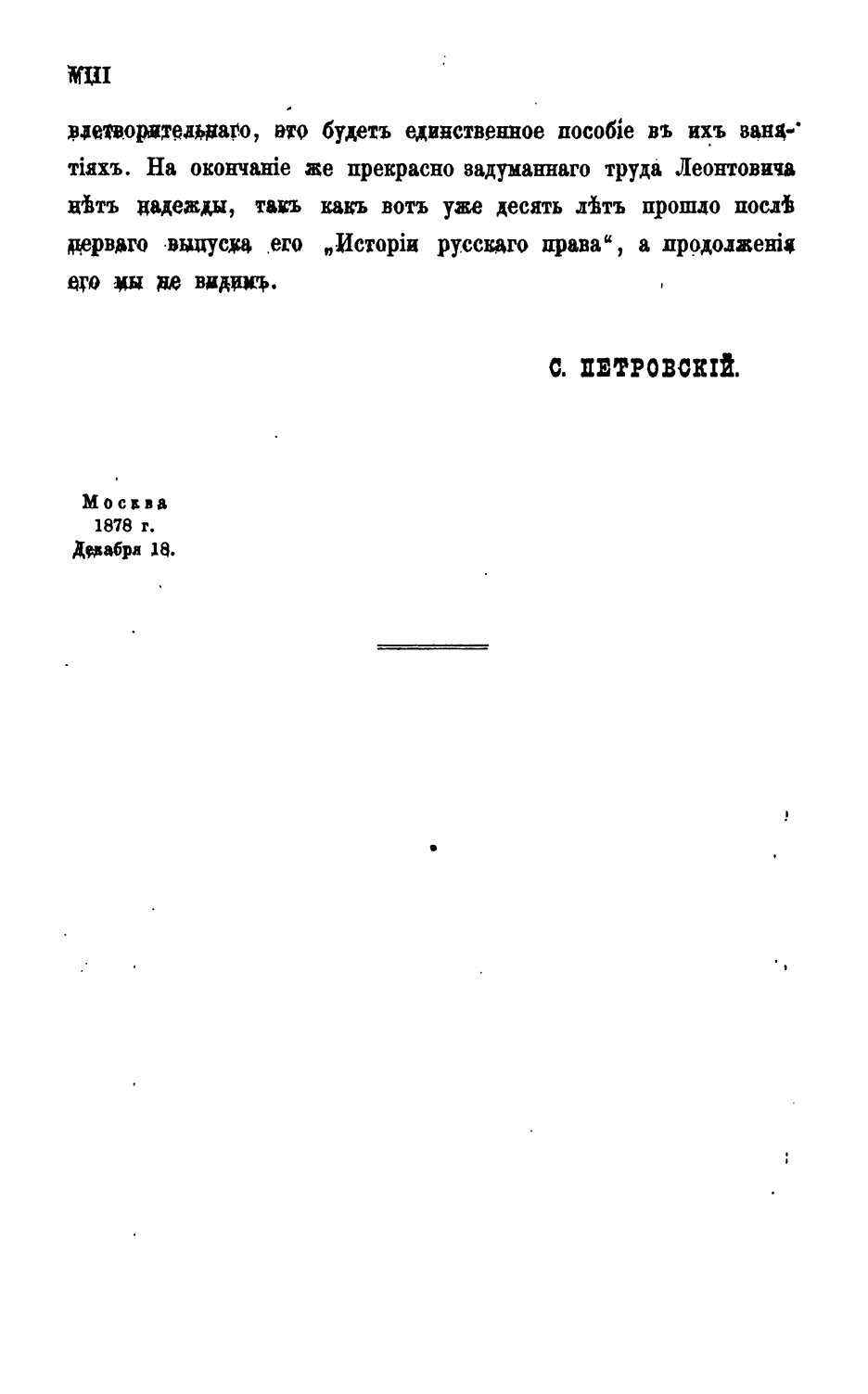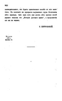 Крупнейшее произведение профессора Московского университета вышло в свет после его смерти и составлено по его собственноручным записям, не предназначавшимся к печати, с дополнениями из студенческих конспектов. Содержит значительный объем ценных сведений по законодательству допетровской эпохи.