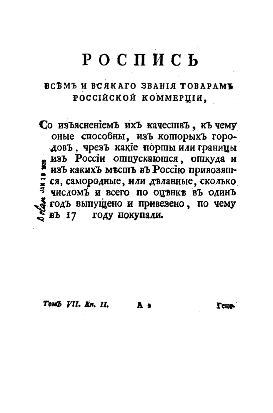 Историческое описание Российской коммерции при всех портах и границах от древних времен до Нынешнего. Том VII. Книга II