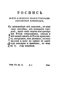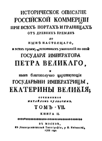 Историческое описанiе Россiйской коммерцiи при всѣхъ портахъ и границахъ отъ древнихъ временъ до Нынѣ настоящаго