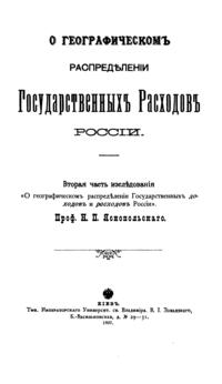 О географическомъ распредѣлении государственныхъ расходовъ Россiи