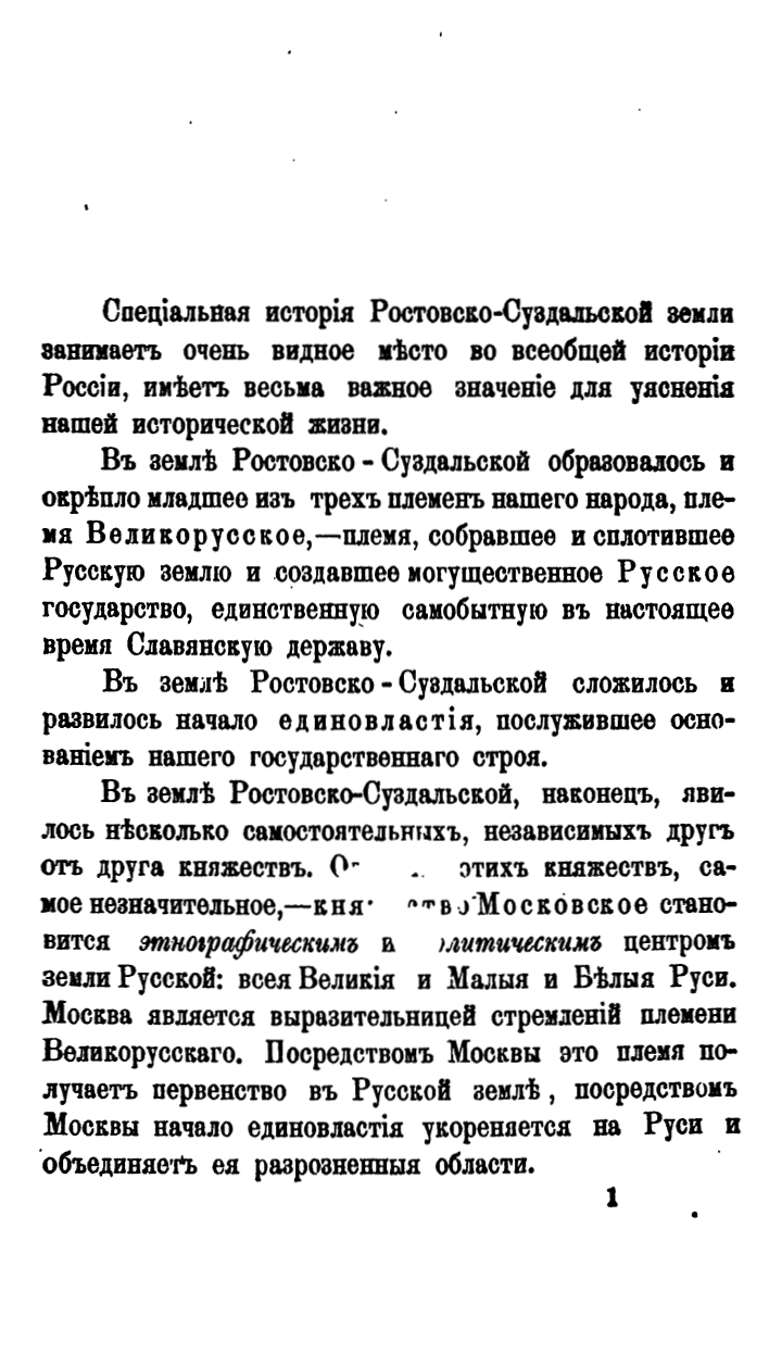 В своем исследовании Корсаков указывает на ключевую роль Ростово-Суздальской земли в истории России, как места, где сложилось «великорусское племя», где получило развитие идея единовластия как основы государственного строя, и где сложился центр объединения русских земель – Московское княжество.