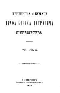 Переписка и бумаги графа Бориса Петровича Шереметева, 1704-1722 гг.