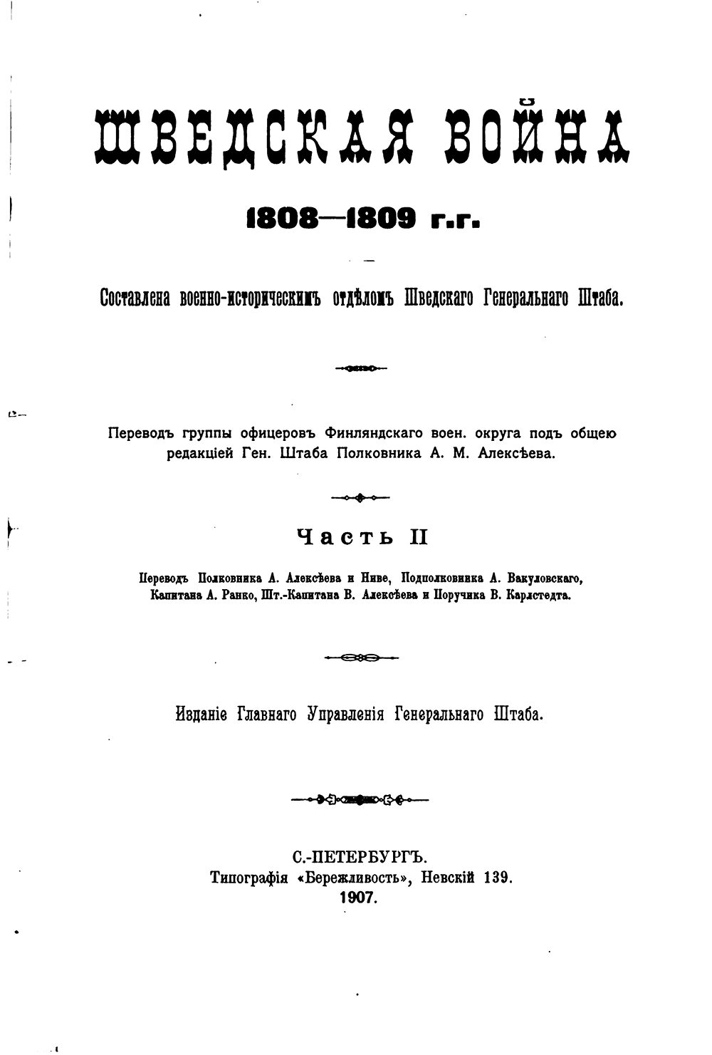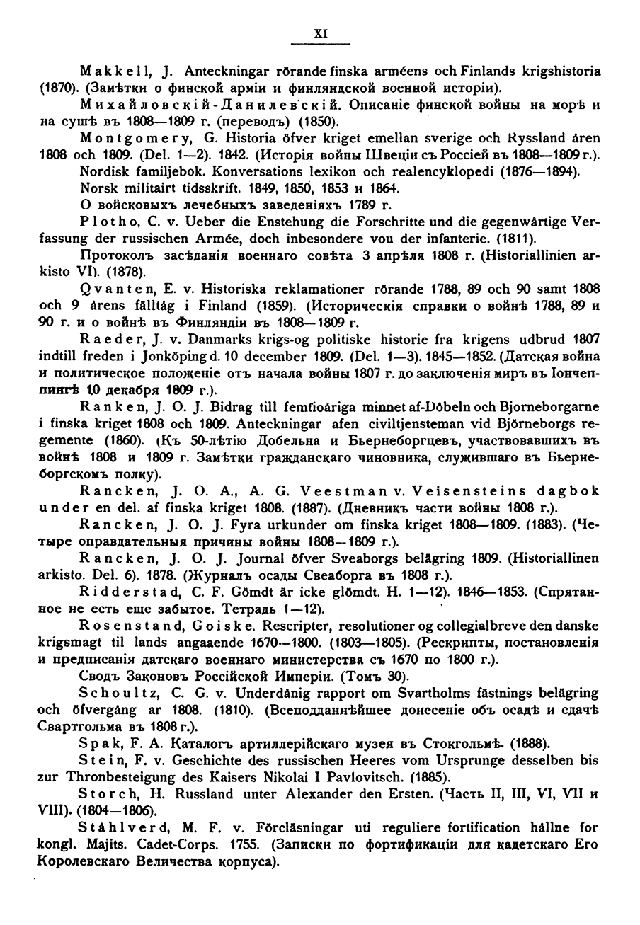 Перевод на русский язык исследования , подготовленного Историческим отделом Шведского генерального щтаба, сделан группой офицеров Российского Генштаба и Финляндского военного округа под руководством полковника А.М. Алексеева