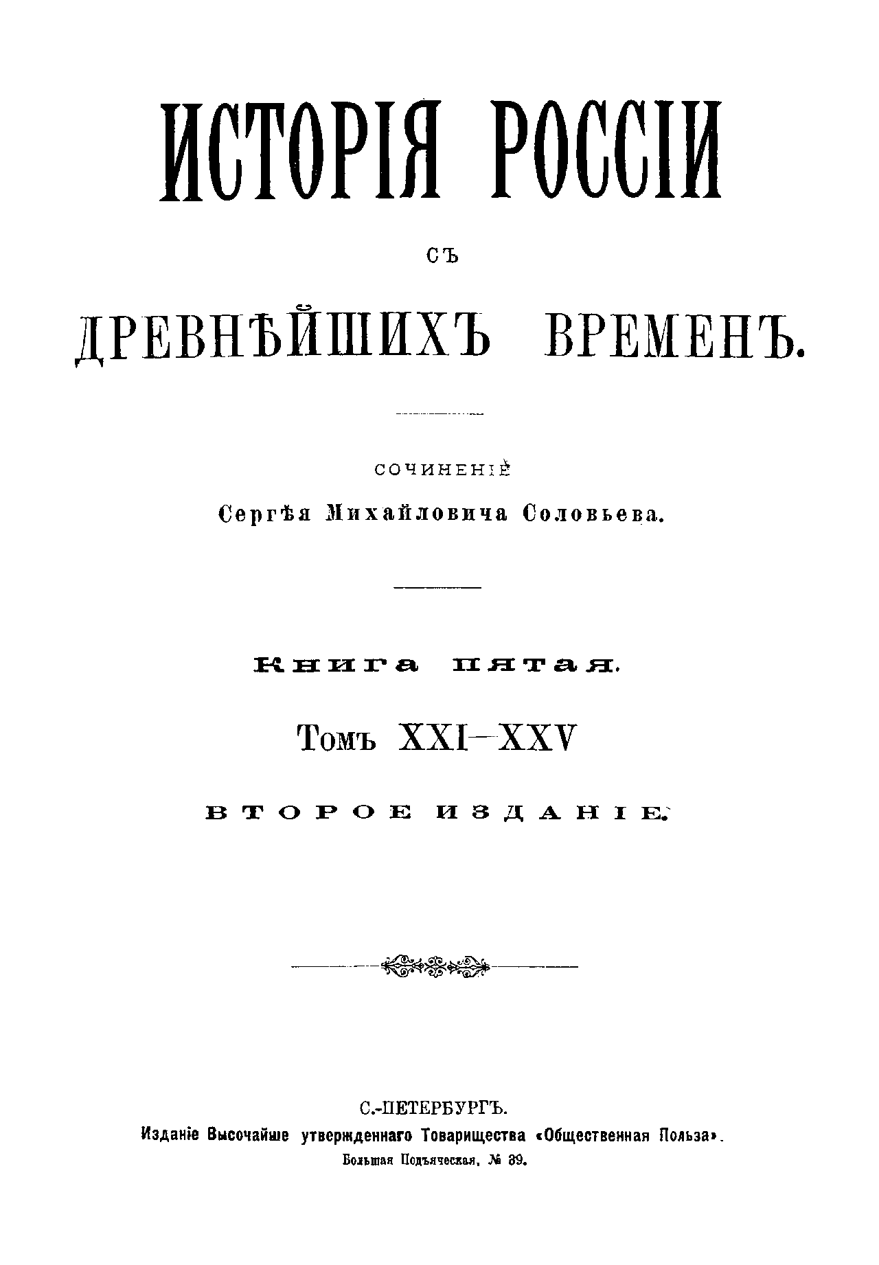 Исторiя Россiи съ древнѣйшихъ временъ. Книга пятая. Томъ XXI - XXV