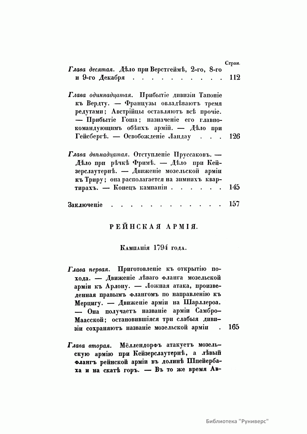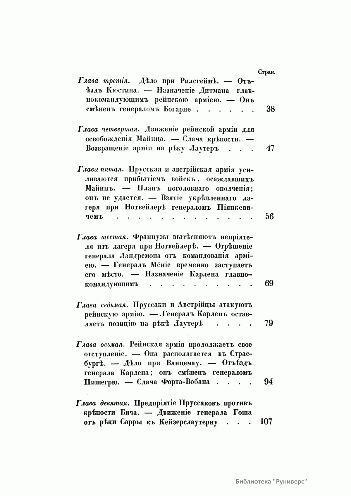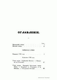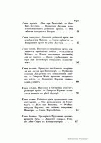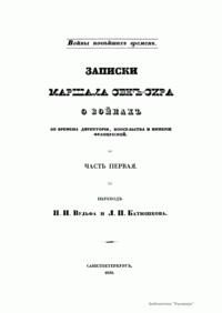 Первый том – Записки маршала Сен-Сира о войнах во времена директории, консульства и империи французской. Часть первая. Второй том – Сочинение Брандта. Обозрение истории военного искусства в средних веках. Третий том – История войн в Европе с 1792 г. вследствие перемены правления во Франции. Четвертый том – Сочинение Маккиавелли. Военное искусство. Пятый том – Записки маршала Сен-Сира о войнах во времена директории, консульства и империи французской. Части вторая и третья. Шестой том - Записки маршала Сен-Сира о войнах во времена директории, консульства и империи французской. Части третья (продолжение) и четвертая.