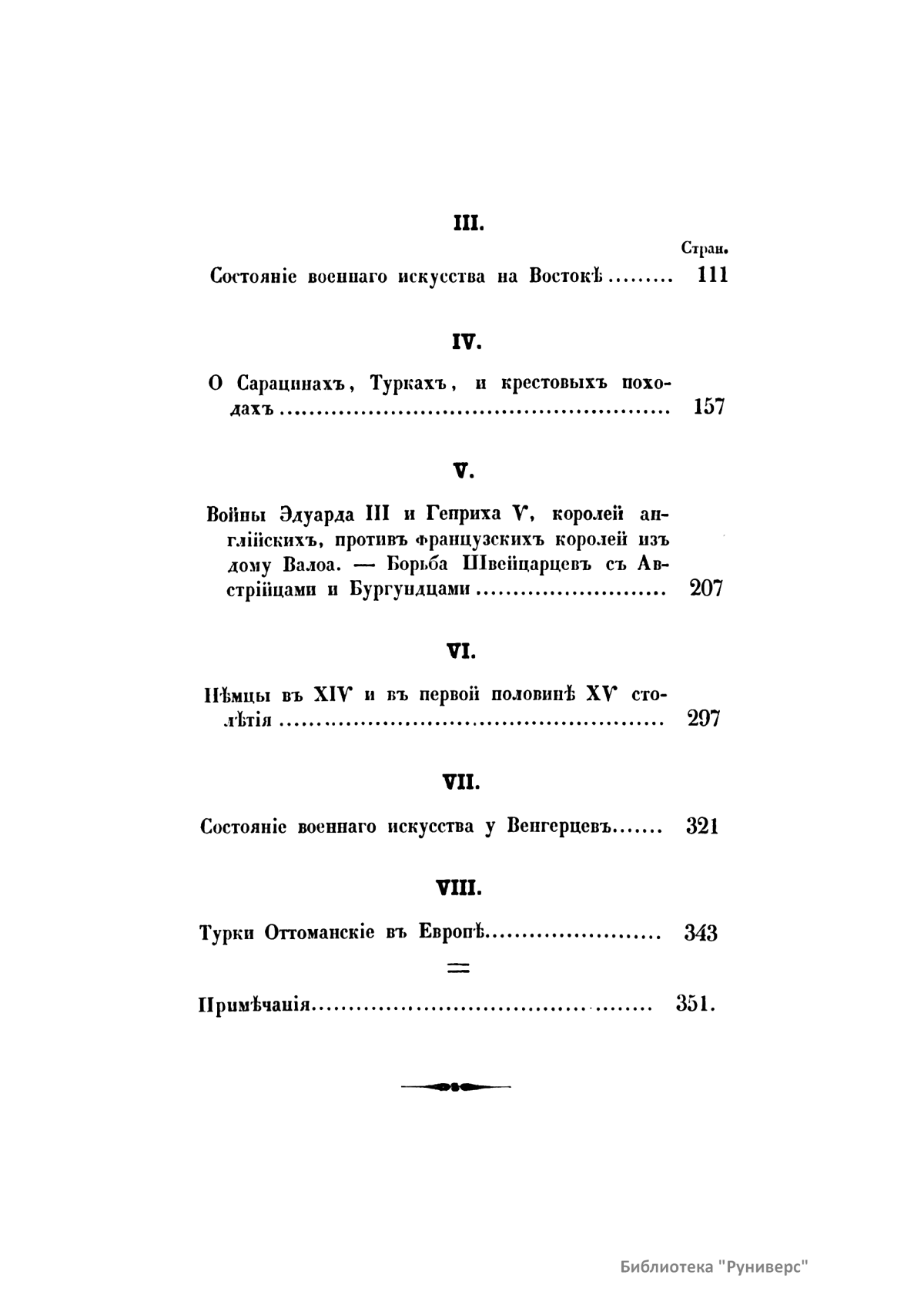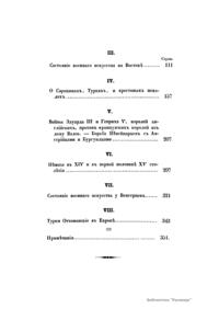 Первый том – Записки маршала Сен-Сира о войнах во времена директории, консульства и империи французской. Часть первая. Второй том – Сочинение Брандта. Обозрение истории военного искусства в средних веках. Третий том – История войн в Европе с 1792 г. вследствие перемены правления во Франции. Четвертый том – Сочинение Маккиавелли. Военное искусство. Пятый том – Записки маршала Сен-Сира о войнах во времена директории, консульства и империи французской. Части вторая и третья. Шестой том - Записки маршала Сен-Сира о войнах во времена директории, консульства и империи французской. Части третья (продолжение) и четвертая.