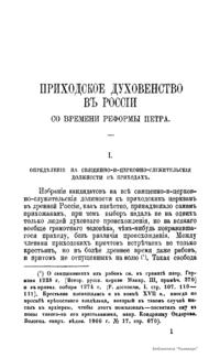 Приходское духовенство в России со времени реформы Петра