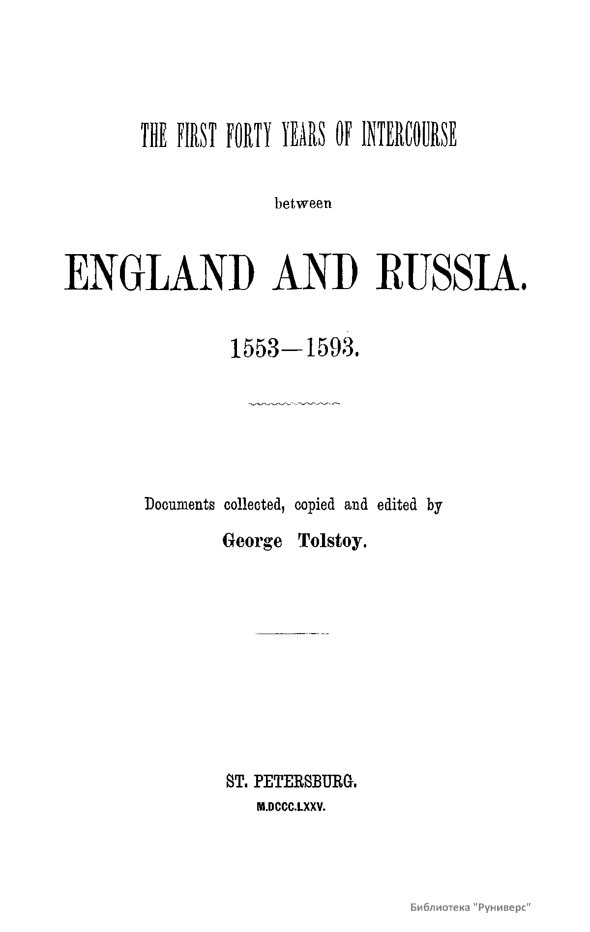 Первыя сорокъ лѣтъ сношенiй между Россiею и Англiею. 1553-1593