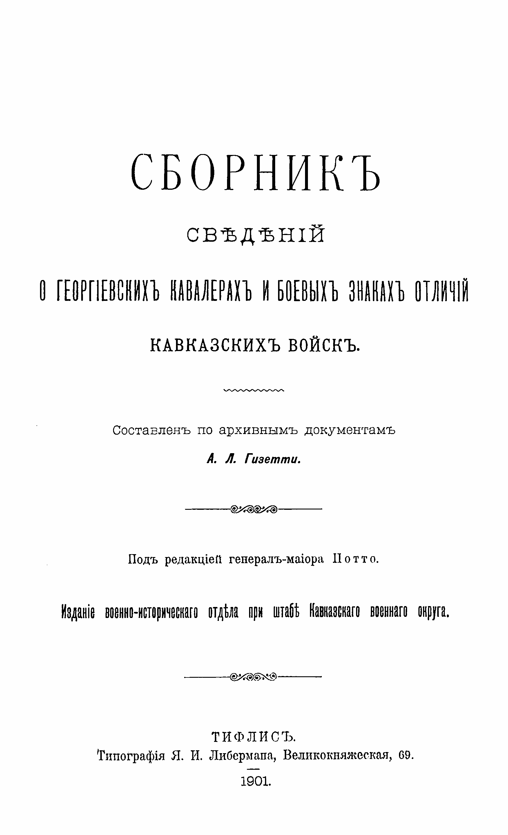 Сборникъ свѣдѣний о Георгiевскихъ кавалерахъ и боевыхъ знакахх отличiй Кавказскихъ войскъ