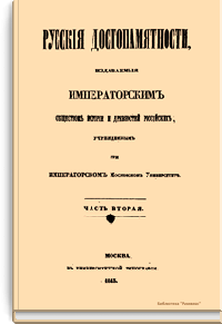 Русскiя достопамятности, издаваемыя обществомъ исторiи и древностей российскихъ. Часть вторая
