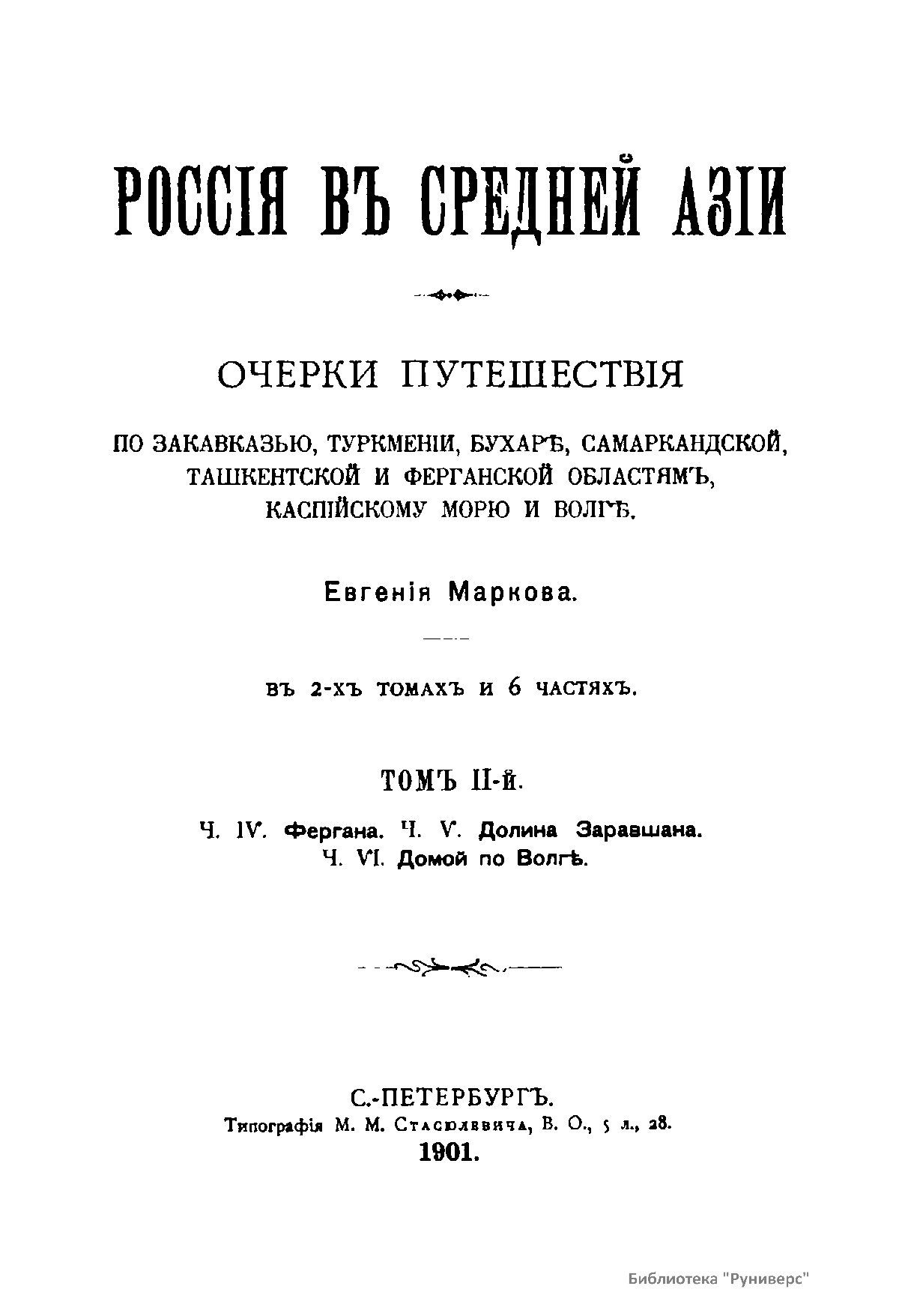 Россiя въ Средней Азiи. Очерки путешествiя по Закавказью, Туркменiи, Бухарѣ, Самаркандской, Ташкентской и Ферганской областямъ, Каспiйскому морю и Волгѣ. Томъ II-й
