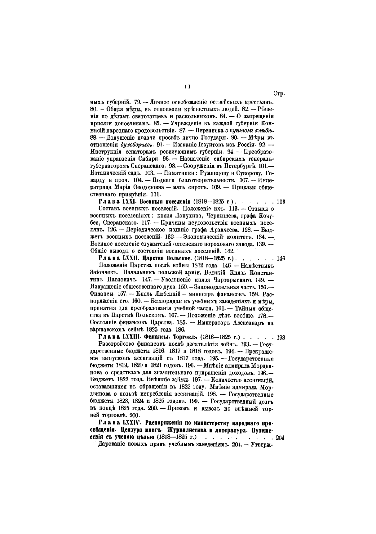 «История царствования императора Александра I и России в его время» вышла в свет в 1869–1871 гг. Ее автор, Богданович Модест Иванович (1805–1882), — генерал-лейтенант, военный писатель. В 1831 г. участвовал в сражениях под Вавром, Гроховым, Дембе-Вельке и Рагозиным. Пройдя курс в военной академии, занял в ней кафедру военной истории и стратегии, был членом Военного совета, официальным военным историографом. Оставил после себя множество военно-исторических и исторических трудов, в которых интересуется, главным образом, политической историей; его попытки критически отнестись к создавшимся легендам были встречены официальными историками весьма недоброжелательно. Повествование разделено на две части: первая, заключающаяся в I–IV томах, охватывает события 1801–1815 гг.; вторая — V, VI тома — содержит исторический период после 1815 г. до кончины Александра I в 1825 г. При создании книги Богданович использовал сведения из государственных архивов, а также до того не издававшиеся документы: бумаги императора Александра I, графа П. А. Строганова, записки адмирала А. С. Шишкова, журнал морских походов Д. Н. Сенявина и др. Полный список источников, печатных книг и рукописей, приведен в конце шестого тома. Богатый фактический материал иллюстрируют карты театров военных действий и планы главных сражений.