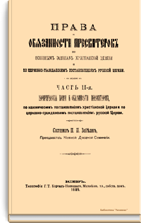 Права и обязанности пресвитеров по основным законам Христианской Церкви и церковно-гражданским постановлениям Русской Церкви. Часть II-я. Иерархические права и обязанности пресвитеров