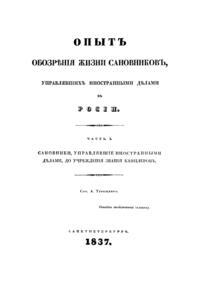 Опытъ обозрѣнiя жизни сановниковъ, управлявших иностранными дѣелами в Росiи