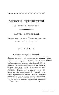 Полное собранiе ученыхъ путешествiй по Россiи, издаваемое Императорскою Академiею Наукъ, по предложенiю ея президента. Томъ пятый. Продолженiе Записок Путешествiя Академика Лепехина