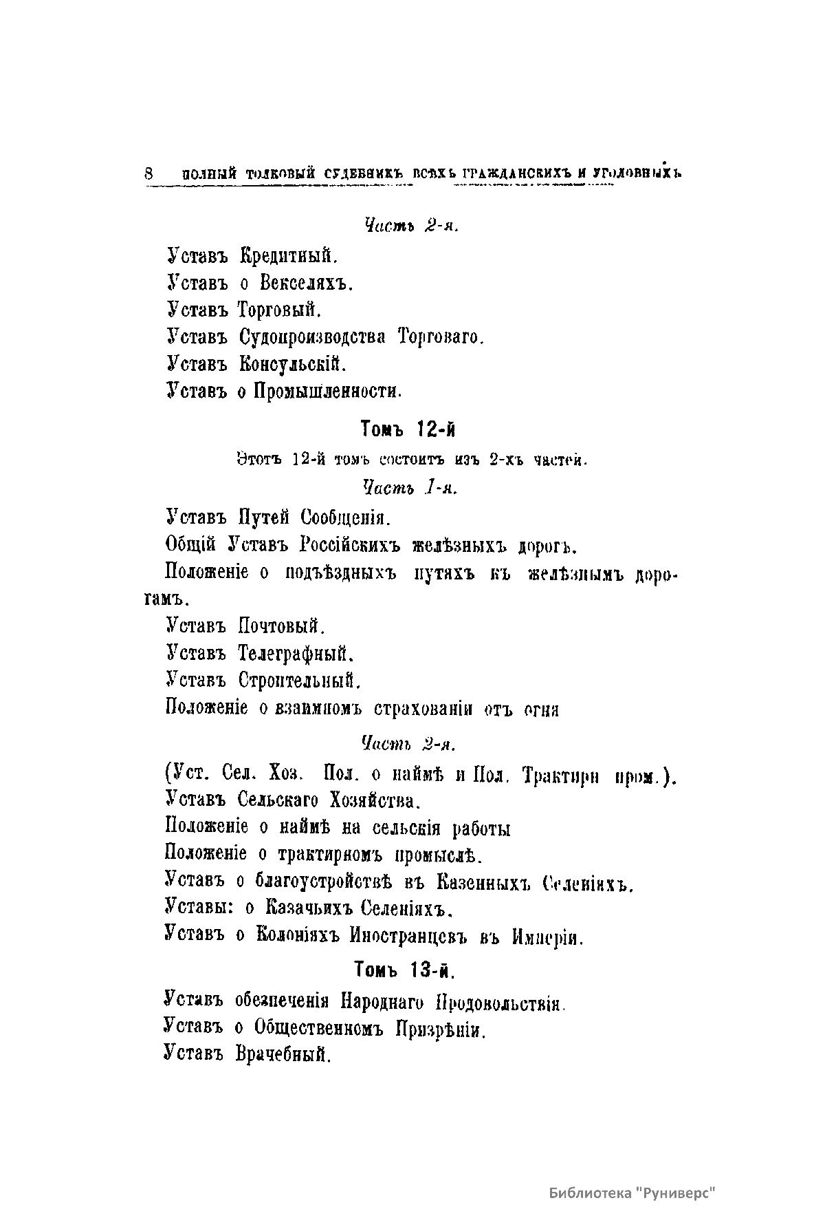 Полный толковникъ законовъ всѣх 16 томовъ или Россiйскiй судебникъ, который служитъ какъ руководство для всѣхъ истцовъ и отвѣтчиковъ, съ указанiемъ способовъ къ личной самозащитѣ, а также и къ начатiю всякихъ исковъ и преслѣдованiю по тяжебнымъ дѣламъ въ гражданскомъ и уголовномъ судѣ