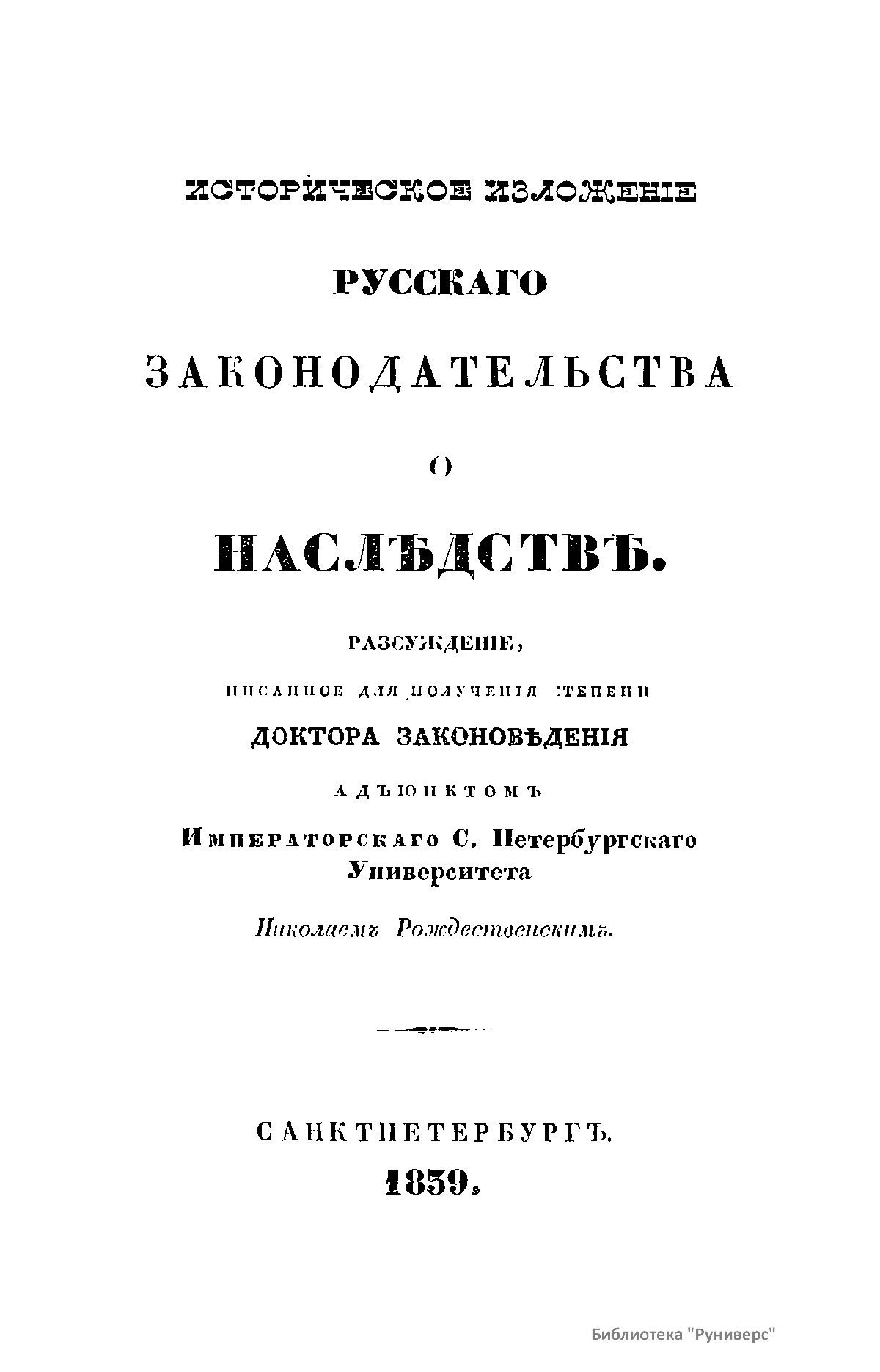 Историческое изложенiе русскаго законодательства о наслѣдствѣ