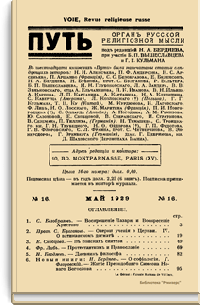 Путь: Орган русской религиозной мысли. №16. Май 1929