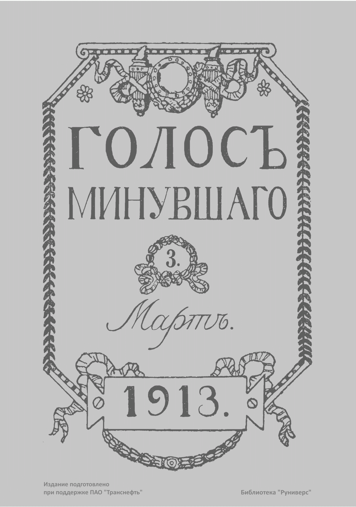 «Голос Минувшего» — журнал истории и истории литературы либерально-народнического направления, издававшийся в Москве с 1913 по 1923 год. Издателем журнала в 1913–1922 годах были известные русские историки, публицисты и общественные деятели С. П. Мельгунов (1880–1956) и В. И. Семевский (1848–1916). В редакционную коллегию также входили А. К. Дживелегов и П. Н. Сакулин. До 1919 «Голос минувшего» выходил ежемесячно, затем нерегулярно, всего было выпущено 65 номеров. В журнале публиковались интереснейшие материалы, посвященные истории литературы и общественных движений в России второй половины XVIII – начала XX веков. Здесь можно найти: статьи по вопросам русской и всеобщей истории, истории литературы, философии, искусства и археологии. В издании представлены: историческая беллетристика, биографии русских и иностранных деятелей, критика и библиография, новости русской и иностранной науки, обзор журналов русских и иностранных, хроника, мемуары, записки, дневники и письма декабристов, видных народовольцев и эсеров, крупных общественных деятелей и царских администраторов, писателей, военачальников и др. Среди авторов: Е. В. Тарле, А. Ф. Кони, А. К. Дживелегов, А. А. Кизеветтер, В. Г. Короленко и др. Стремление сделать журнал интересным для более широкого круга читателей способствовало тому, что в «Голосе Минувшего», хоть и в ограниченном количестве, печатались статьи по истории искусства и помещались иллюстрации: портреты, картины и рисунки, не знакомые или мало знакомые публике. В журнале опубликован целый ряд интересных писем, документов и воспоминаний. Абсолютное большинство текстов никогда не переиздавалось. Журнал снабжен указателями имен за 1913–1922 годы и систематическим указателем содержания.