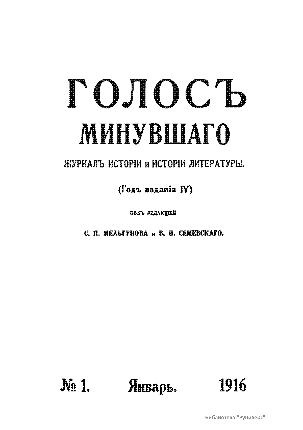 Голосъ минувшаго. 1916. 1. Январь